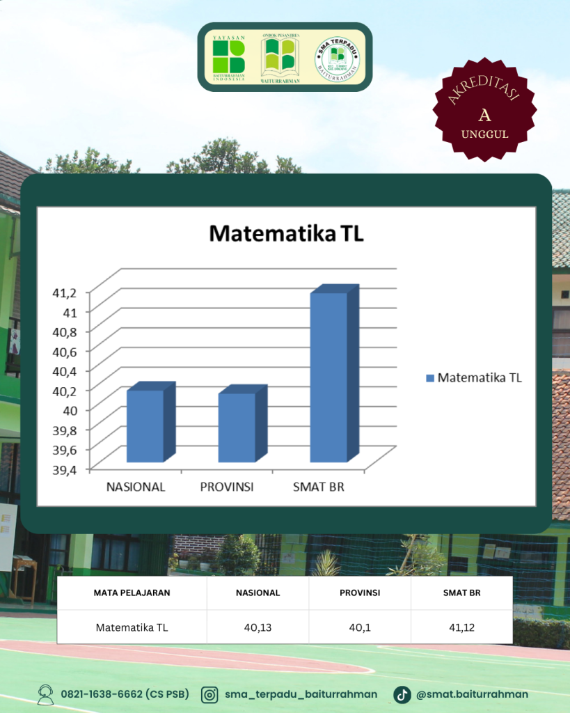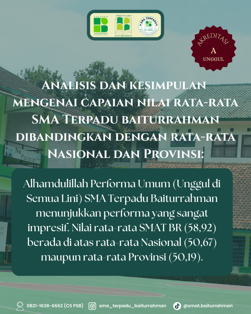Alhamdulillah Performa Umum (Unggul di Semua Lini) SMA Terpadu Baiturrahman menunjukkan performa yang impresif.